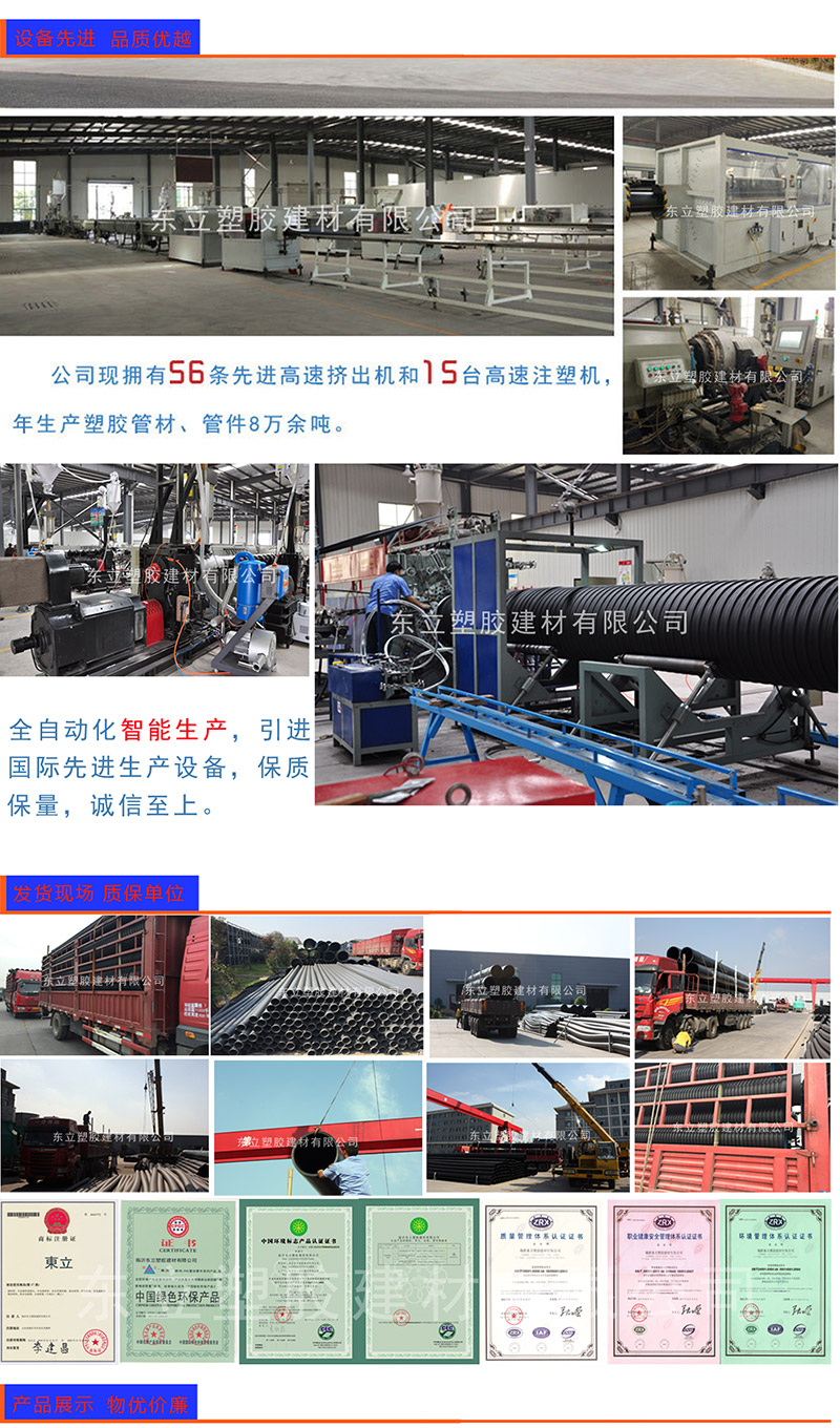 东立牌PVC环保管材、管件系列产品严格按照GB/T10002.1-2006及GB/T10002.2-2003标准生产,采用有机锡绿色环保配方,卫生性能完全符合GB/T17219-1998标准要求及国家卫生部相关的卫生安全评价规定. 产品最新优惠价格您可拨打0539-8854811或17705399608了解。