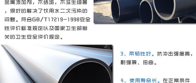 ⑦、良好的可绕性:管道柔性好,可适度弯曲,抗不均匀沉降效果好。